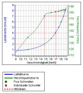 Erstmals konnte bei einem WM Team des DJJV ein kompletter Stufentest zur Bestimmung der individuellen aerob-anaeroben Schwelle durchgeführt werden. Jeder Athlet (Bild 1 vor dem Test) hatte die Möglichkeit sich für einen Ergometer seiner Wahl zu entscheiden, wobei die Mehrheit der Athleten das Laufband (Bild 2) wählte und nur einige den Fahrrad Ergometer (Bild 3). Nach einem Vortest wurde die passende Belastung ausgewählt. In Bild 4 ist eine optimale Belastungskurve zu sehen. Mit diesen Daten kann sowohl der gesamte Bereich des Grundlagenausdauer- und speziellen Ausdauertrainings optimal gestaltet und geplant, also auch die sportartspezifische Belastung mit gesteuert werden.