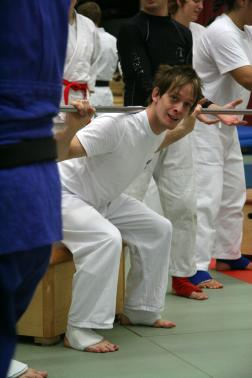 Anschließend war Erholung angesagt. Einige Athleten gingen zum Relaxen, einige Schlafen und einige Unermüdliche gaben sich mit den Trainern noch Videoanalysen. Um 20:00 Uhr dann eine schöne Überraschung für unser WM Team. Heimlich hatten die Trainer ein gemeinsames Buffet in einem der Schulungsräume organisiert. Nach den gemeinsamen Abendessen gingen die Starter sofort zu Bett. Der letzte Tag war dann wieder den Randoris vorbehalten. Zwei Stunden Randori für unsere WM Starter und dann eine letzte ultimative Ausbrenneinheit für unsere Duo- und Fightingathleten. Hier mussten unsere Athleten absolut das Letzte geben. Unter den Anfeuerungsrufen der sogenannten „Knechter“ (Trainingspartner) wurden sie förmlich über die Matte gejagt und wenn sie nicht mehr konnten einfach weitergezogen oder geschoben. Mit dieser letzten Ausbrenneinheit endete ein für alle genialer Lehrgang.