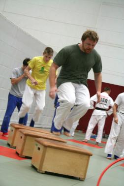 Für die Feinabstimmungen bei den Duo Athleten wurden anspruchsvolle Balance- und Koordinationsübungen durchgeführt. Das Techniktraining war immer wieder bestimmt von starken Belastungsspitzen und Wettkampfsituationen. Auch das Schnelligkeits- und Angriffstraining forderte seinen Tribut. Bei den Fightern gings mit Schnelligkeitstraining los, dann Koordinationstraining, Spezialtechniktraining und technisch-taktische Randoris. Am zweiten Tag wurden komplette 3 Minuten Randoris mit Coaching und Punktevergabe zeitgleich auf zwei Matten gefahren. D. h. für die WM Athleten das sie jeden fünften Kampf ran mussten und dies über eine Zeitdauer von knapp 3 Stunden. Samstagmorgen war wieder ein reiner Randoritag mit Vergleichskämpfen für Duo und Fighting mit einer gemeinsamen Ausbrennheit am Nachmittag.
